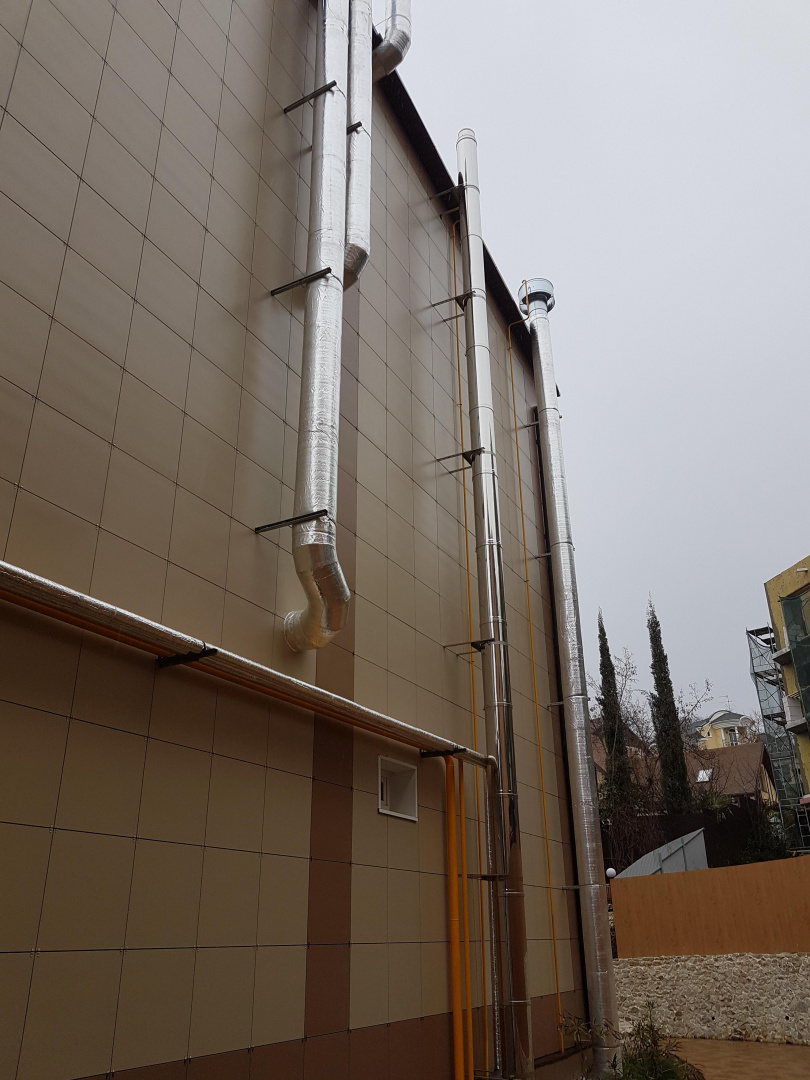 Дымоход из кислотостойкой нержавеющей стали от 5 конденсационных котлов общей мощностью 500 кВт