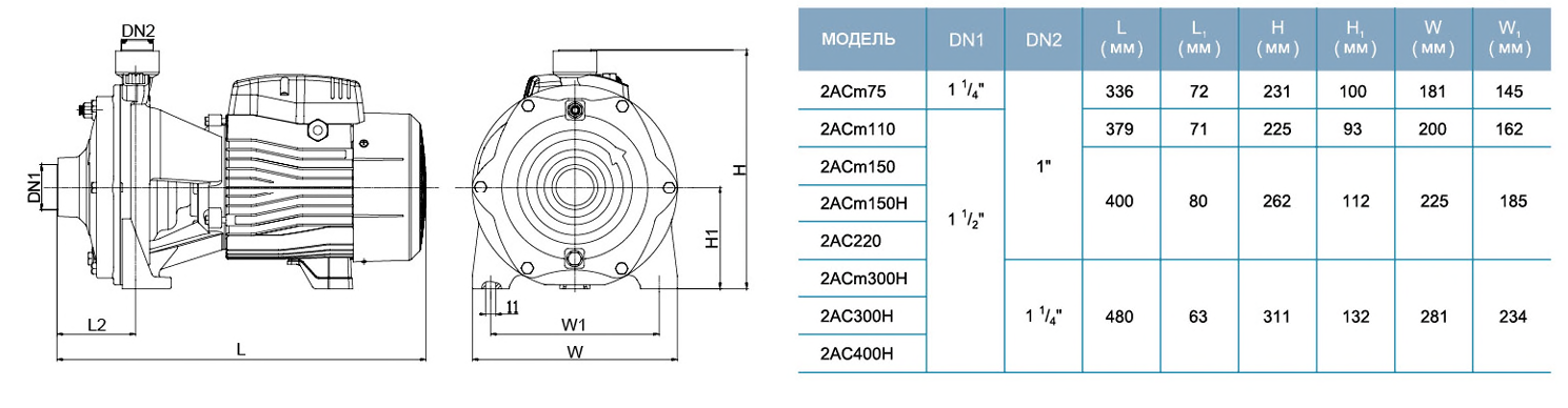 Высокопроизводительный центробежный двухступенчатый насос 2ACm110 предназначен для перекачивания чистой, не содержащей абразивных частиц (песка) воды из колодцев и емкостей.
